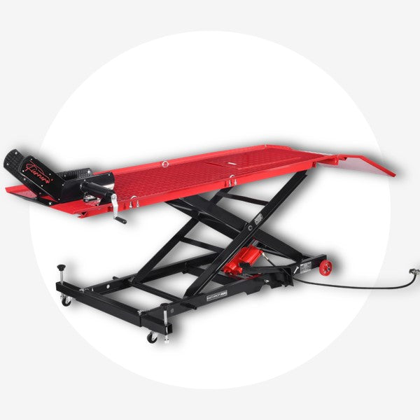 Workshop equipment - From motorcycle lifters to sheet panel lifters, a car rotisserie, mobile scaffold, trolley jack and mobile waste oil drainer with air compressor, we have all the automotive workshop equipment you could need to fit out your workshop and make vehicle repairs and maintenance a breeze.