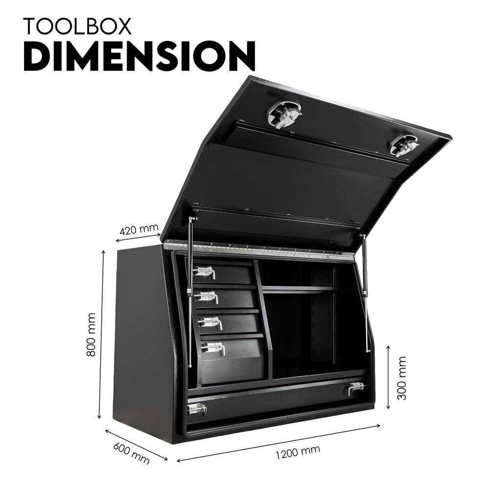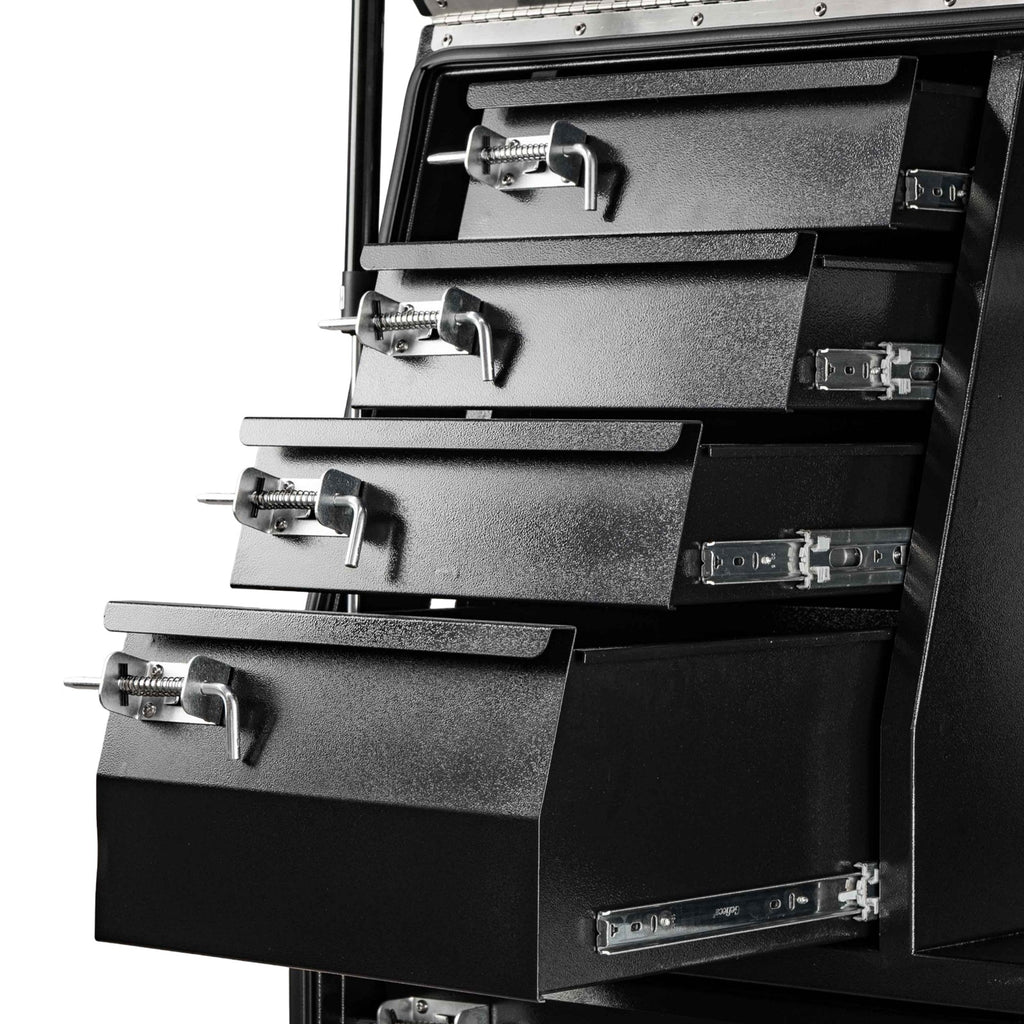 When you’re hauling gear across the jobsite or out bush, the Boximus 1200mm Black Steel 5 Drawer Toolbox delivers strength that never quits. Built from heavy-duty powder-coated steel, it’s made to handle rough workdays, hard knocks, and the harsh Aussie climate. Five drawers keep everything from drill bits to power tools sorted, while the top shelf compartment gives you extra space for the bulky stuff. With smart features like whale tail compression locks, twin gas struts, and weather-sealed protection, this unit proves why Boximus gear is trusted by serious tradies who demand reliability over gimmicks.