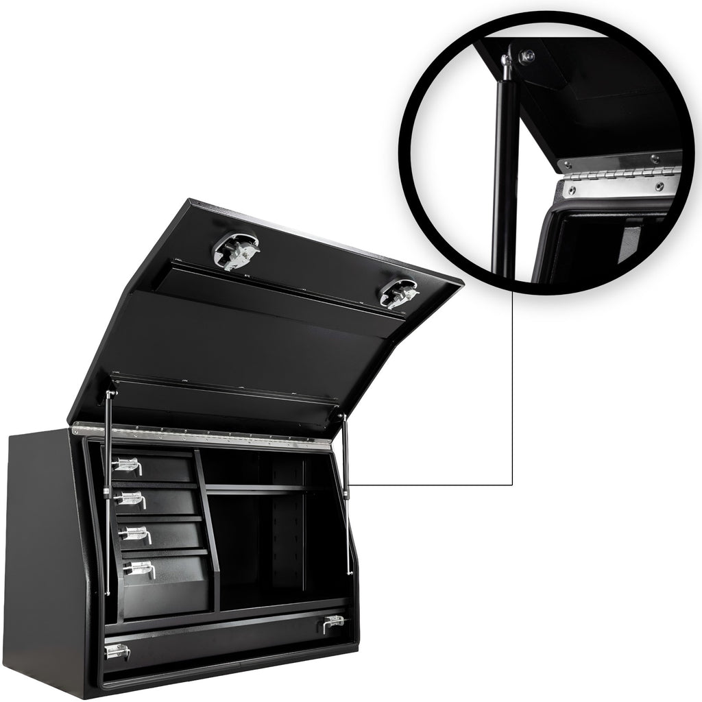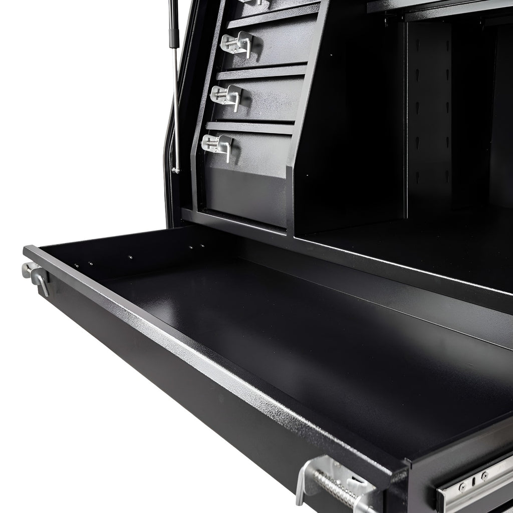 | Top Compartment | Open shelf for bulky tools/gear bags |