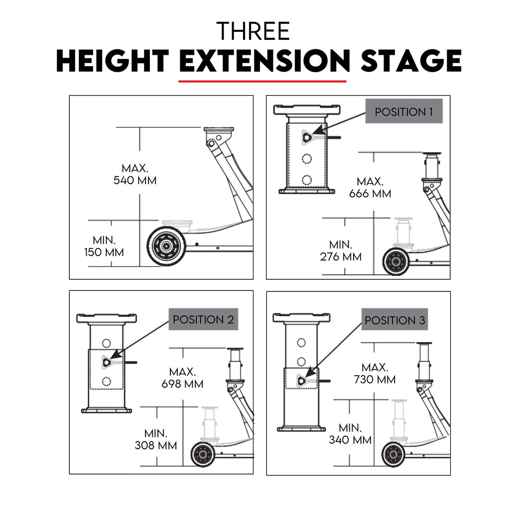 | Extension Stages | 126 mm, 158 mm, 190 mm |