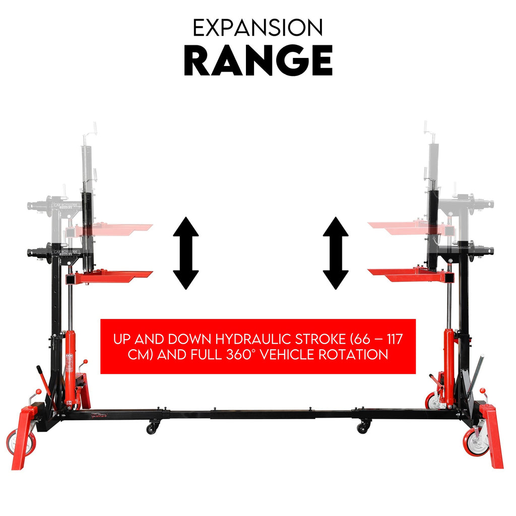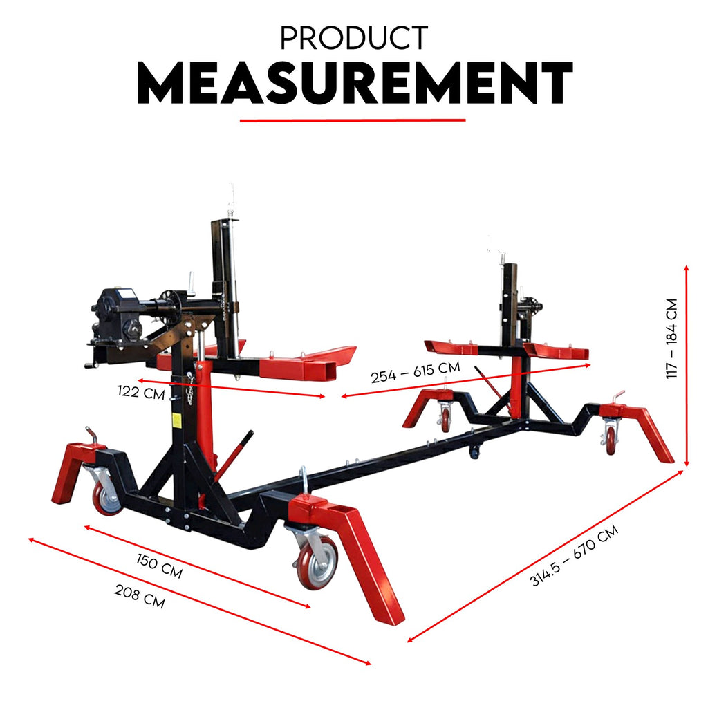 When you’re knee-deep in a full-body restoration, you need gear that keeps up. The Fiernero 4500 lb Gear-Assisted Auto Rotisserie System is built for serious workshop jobs — giving you full 360° control and total stability while you strip, weld, or paint. Twin 8-ton hydraulic cylinders make lifting heavy shells smooth and balanced, while the gear-assisted rotation lets you position your project with pinpoint accuracy. Adjustable from 1,200 mm to 5,800 mm, this unit fits a wide range of vehicles and holds its own under real load. It’s heavy-duty, workshop-tough, and made for pros who want safer, faster, no-nonsense results.